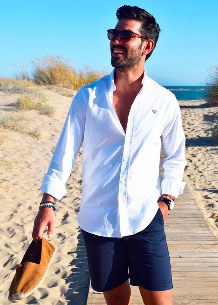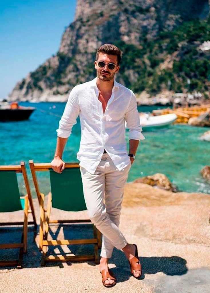 Una camisa de vestir (en lino o telas similares) y pantalones (de sarga o telas similares) son un buen ejemplo.